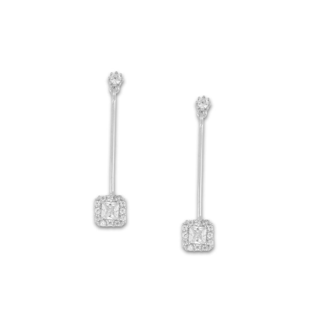 Zilveren Oorbellen met Vierkant Hanger - Zirkonia Steentjes - Amaia