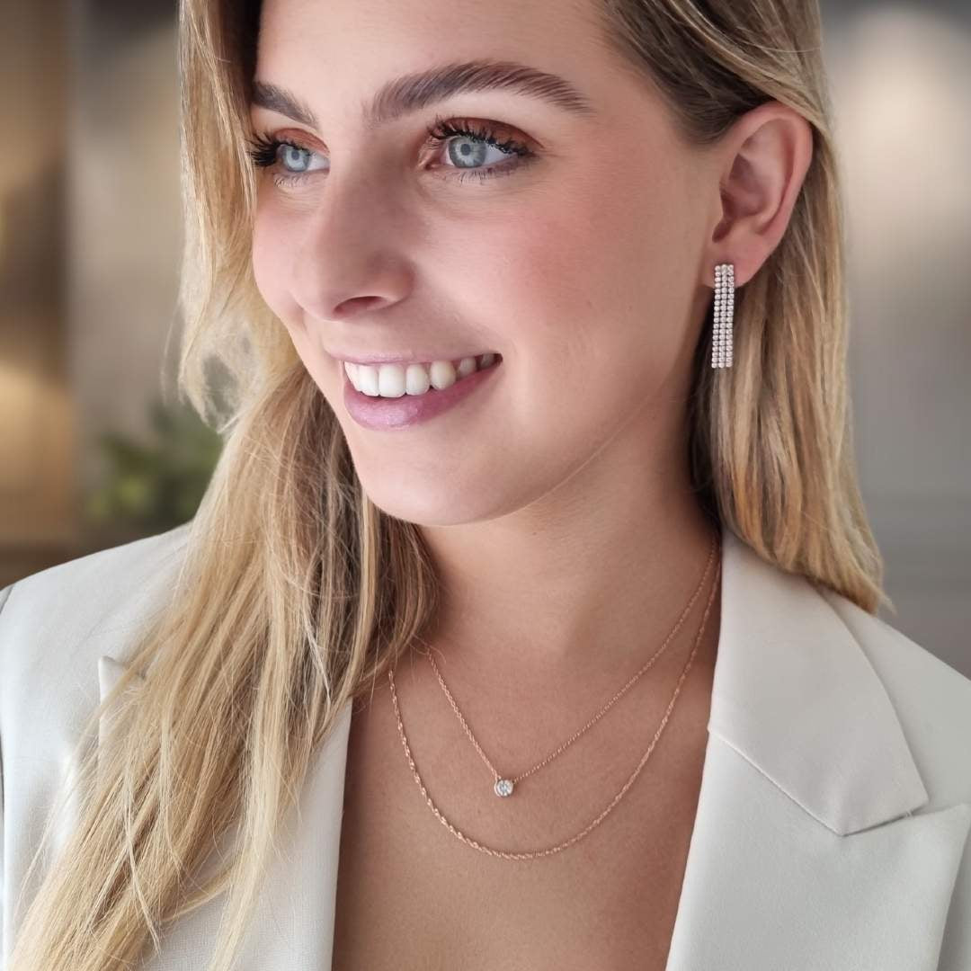 Voor een complete, stijlvolle uitstraling combineer je de Elsa oorbellen met andere rosé sieraden. Denk aan een rosé tennisarmband die net als de rivière oorbellen ingelegd is met zirkonia steentjes, een rosé ketting met een subtiele steen, of een luxe rosé ring. Deze accessoires brengen een warme, elegante sfeer en passen perfect bij feestelijke, elegante outfits.  Creëer een unieke stijl die bij jou past en get ready to shine op elk event.